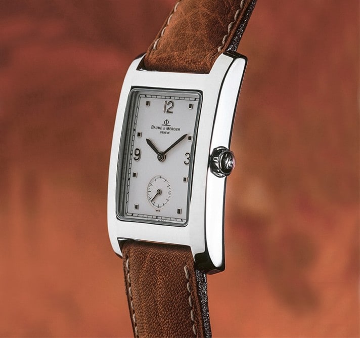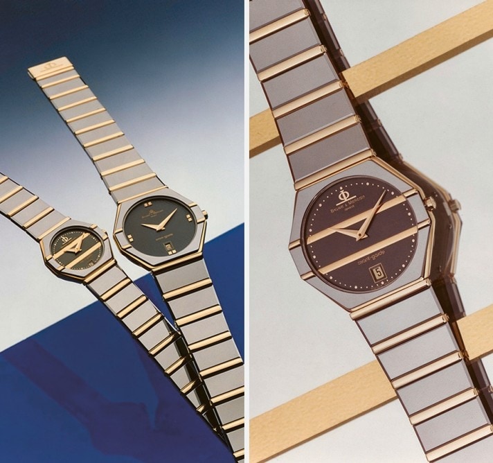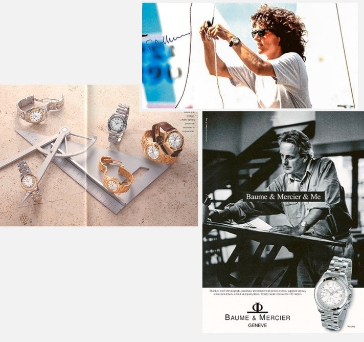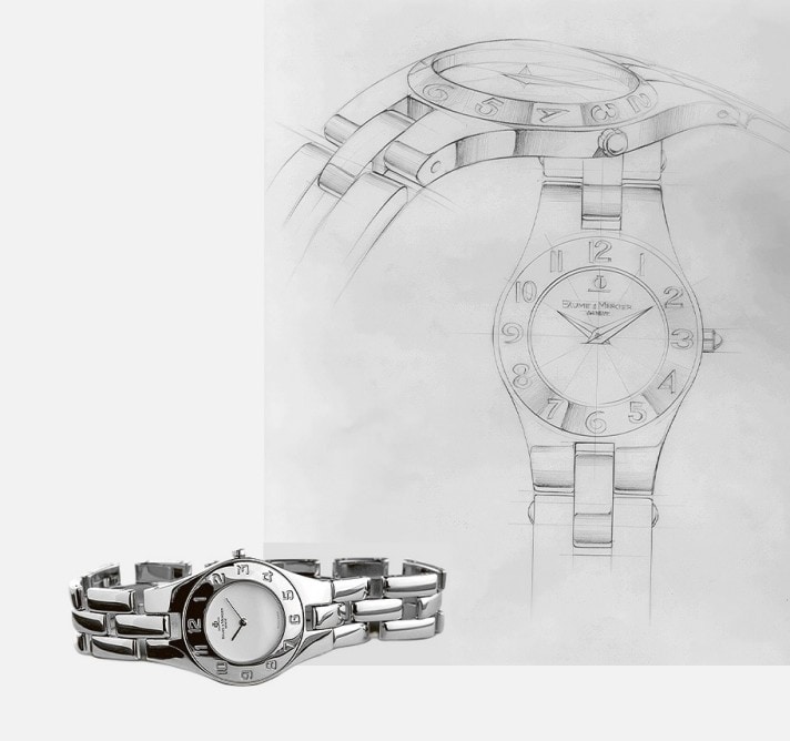A new men’s watch in 1998, Capeland, became the round steel version of the rectangular Hampton. After Baume & Mercier’s success in women’s timepieces with the Linéa, the Capeland took up the legacy of the Riviera and Hampton watches, elegant timepieces with a more casual style. It is named after an imaginary place, hinting at travel, adventure, discovery and stylistic research while expressing power and strength. “Cape” is suggestive of the ocean and exploration, while “Land” adds a grounding element. Equipped with a second time zone or an alarm, and available in steel and bicolor cases, the watch evolved into a dynamic chronograph that succeeded the Malibu models, as well as a sporty diving watch with a graduated rotating bezel.